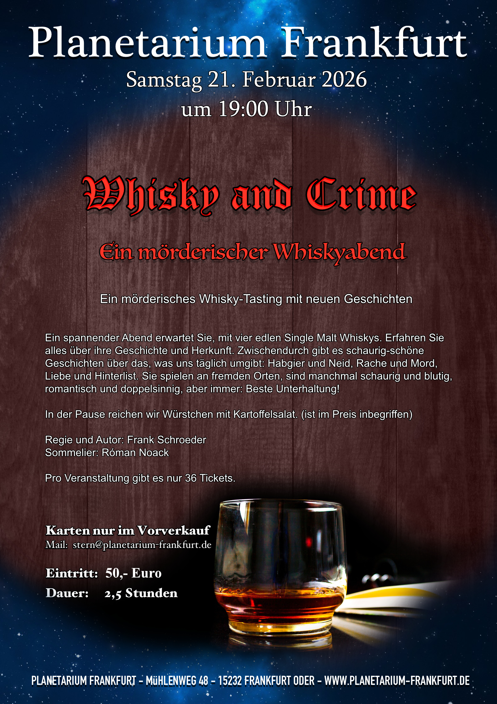 Sa., 21. Feb. | 19:00 | Whisky and Crime | E |
